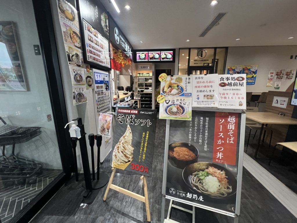 売店や飲食店が充実しており、福井の名物グルメを気軽に楽しめます。