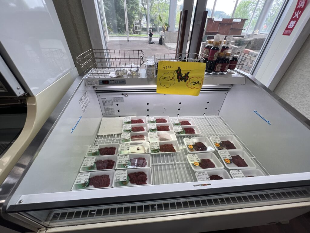 手作りのお弁当や馬刺しも販売されており、地元の味を気軽に楽しめます。