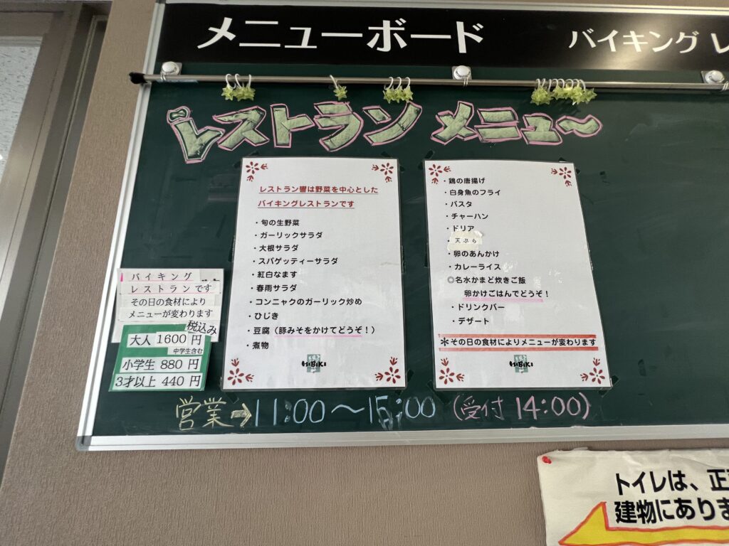 敷地内には「レストラン響」があり、野菜を中心としたバイキング形式のレストランです。