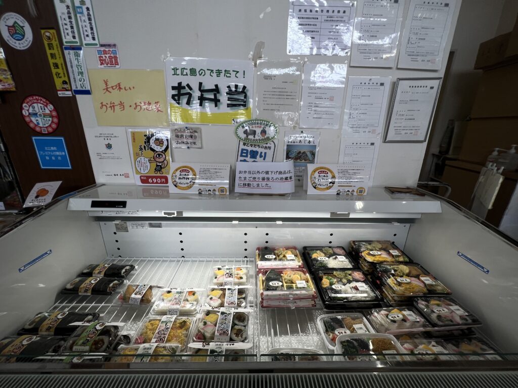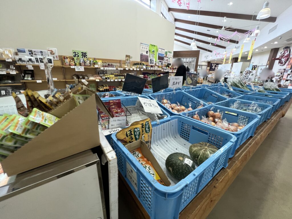 産直コーナーには、新鮮なとれたて野菜がたくさん並んでいて、お弁当なども販売されています。