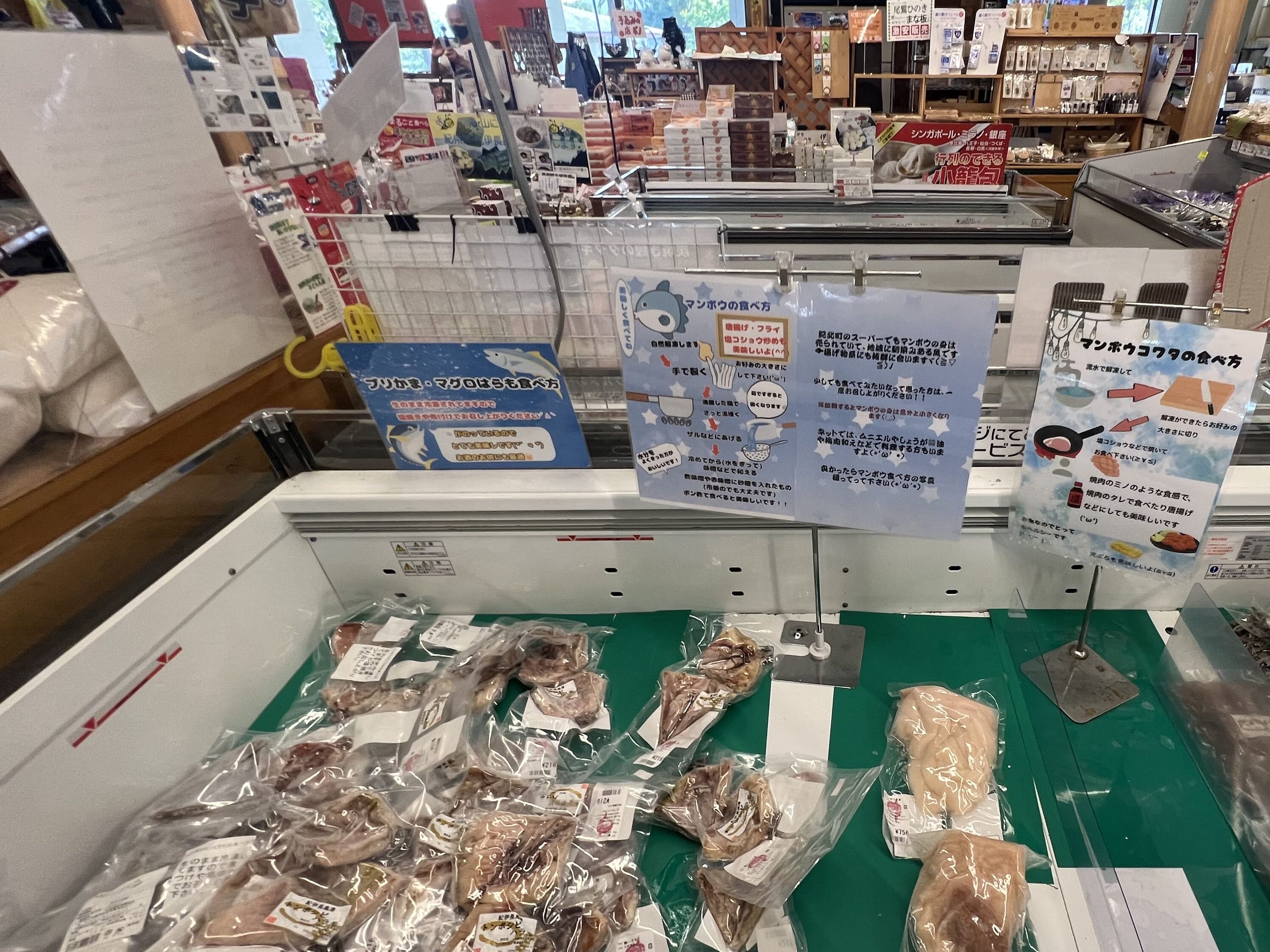 施設内では新鮮な海の幸を購入できるほか、珍しいマンボウフライなども味わうことができます。