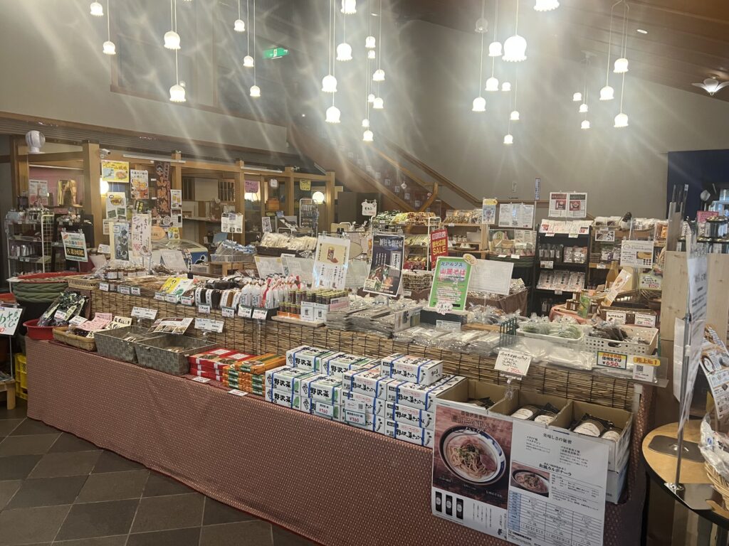 信州の銘菓や加工品など、お土産が充実しています。野沢菜をはじめ、信州産にこだわった商品が豊富に並びます。