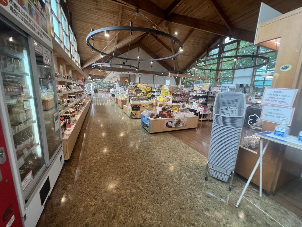売店では地元特産品が揃い、軽食やスイーツも楽しめます。