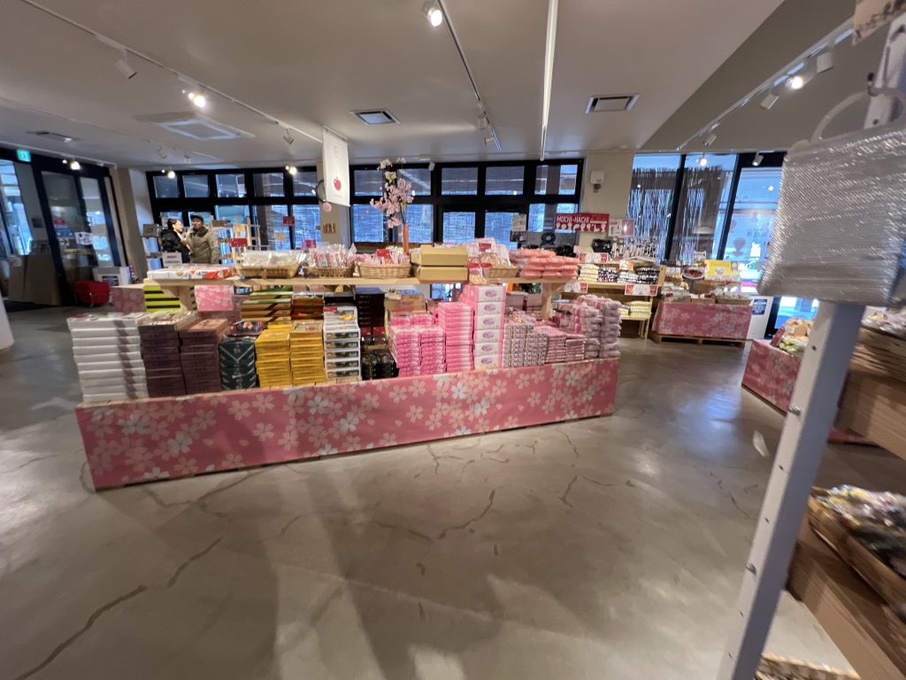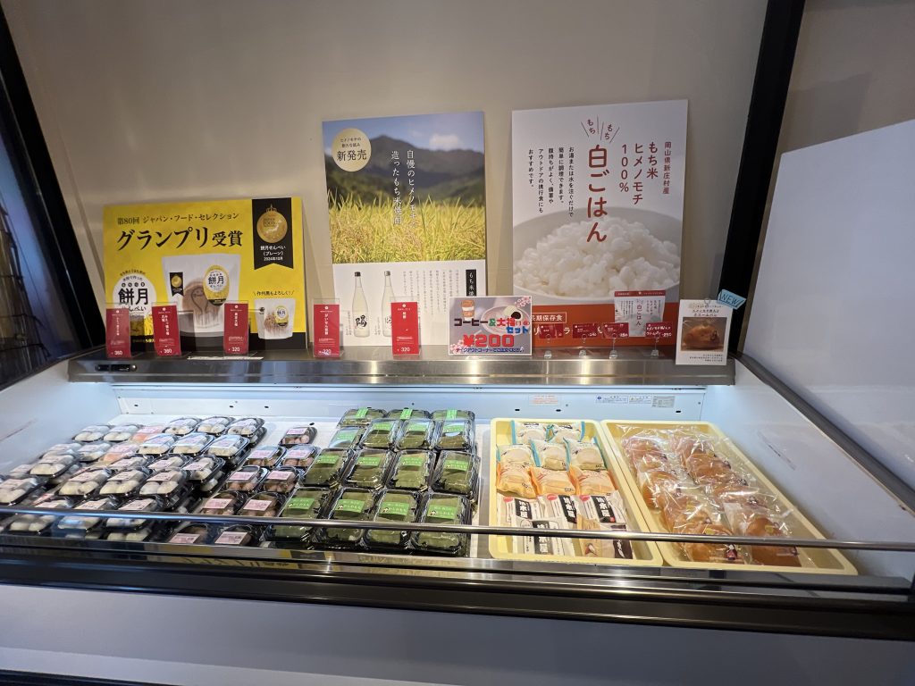 村のマーケットでは、新庄村が誇る最高品種のもち米「ひめのもち」を使った商品が並んでいます。