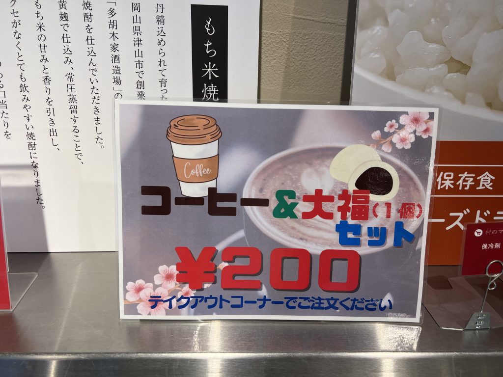 テイクアウトもでき、なかでも「コーヒー&大福セット(200円)」はおすすめです。