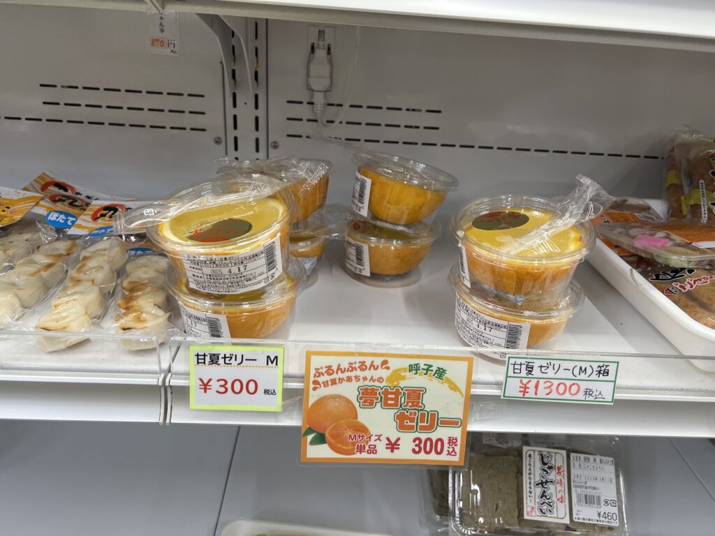 新鮮な野菜や弁当が並んでいます。名物は、地元産の小豆を使った佐用姫だんごです。
