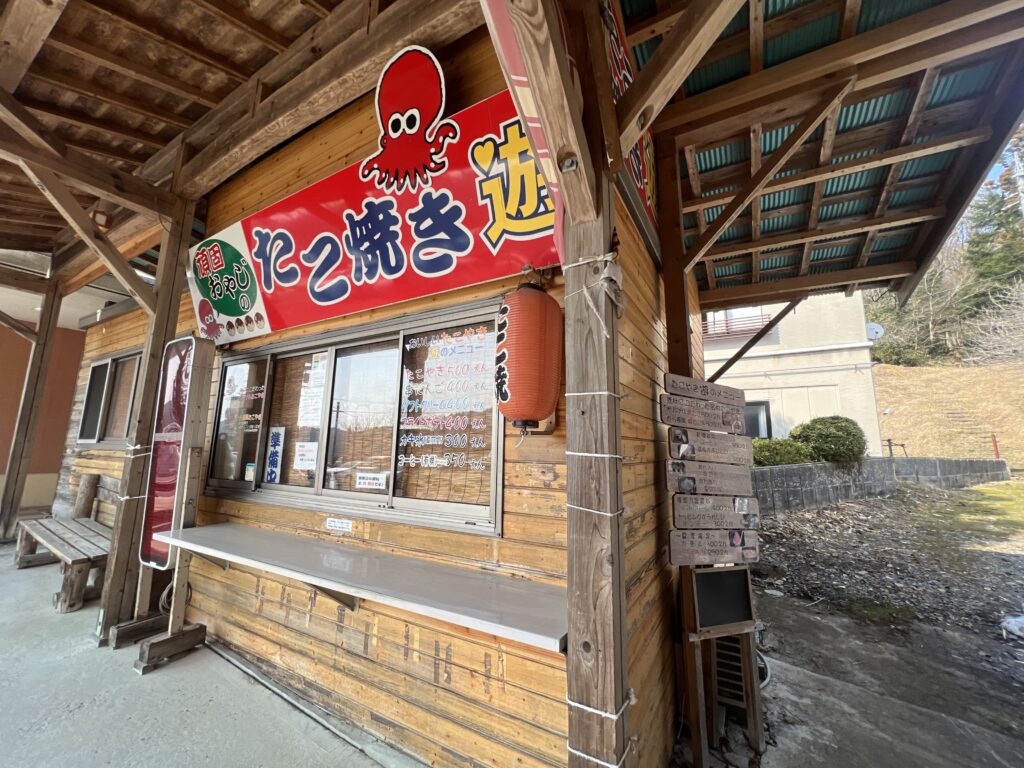 気軽に立ち寄れる「たこやき遊」では、焼きたてのたこ焼きが味わえます。ドライブ途中の小腹満たしにぴったりです。