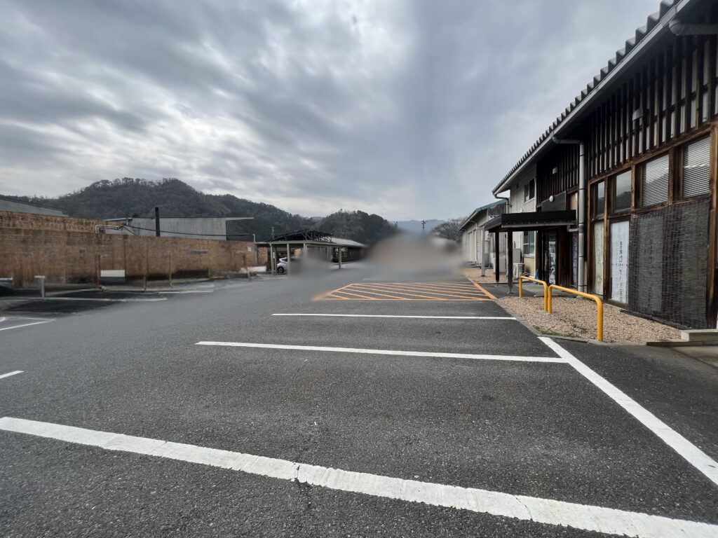 大型車用スペースは限られていますが、全体としては広々とした駐車場です。