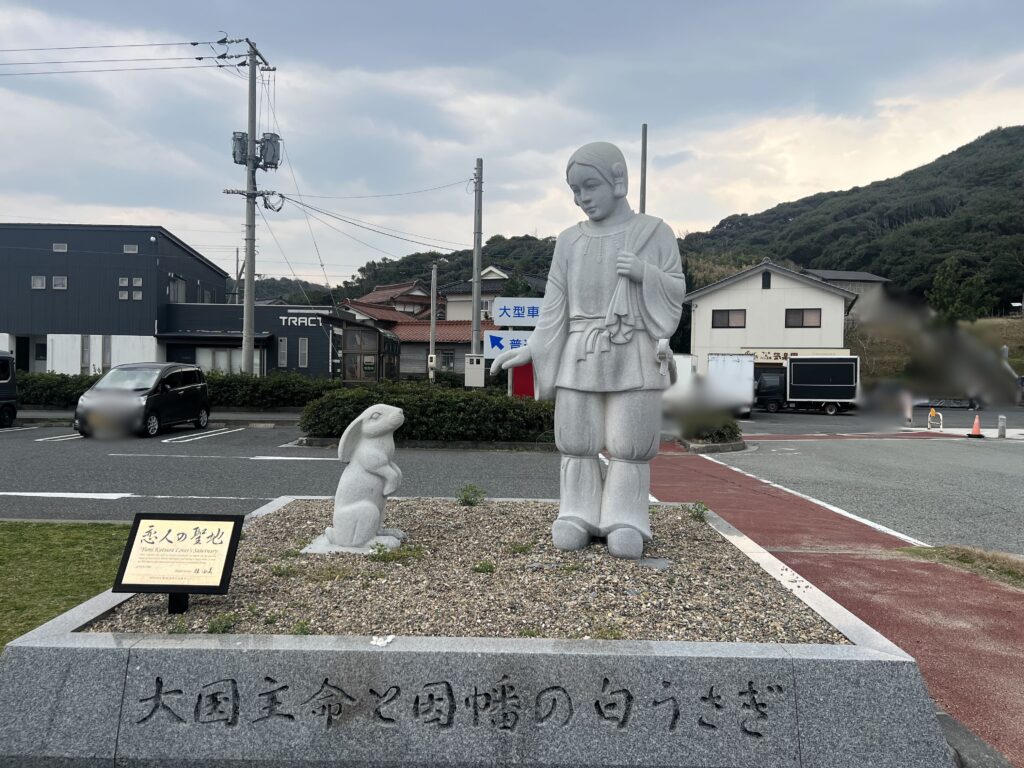 このあたりは日本神話「因幡の白兎」の伝説ゆかりの地で、すぐ近くには白兎神社や白兎海岸が広がります。