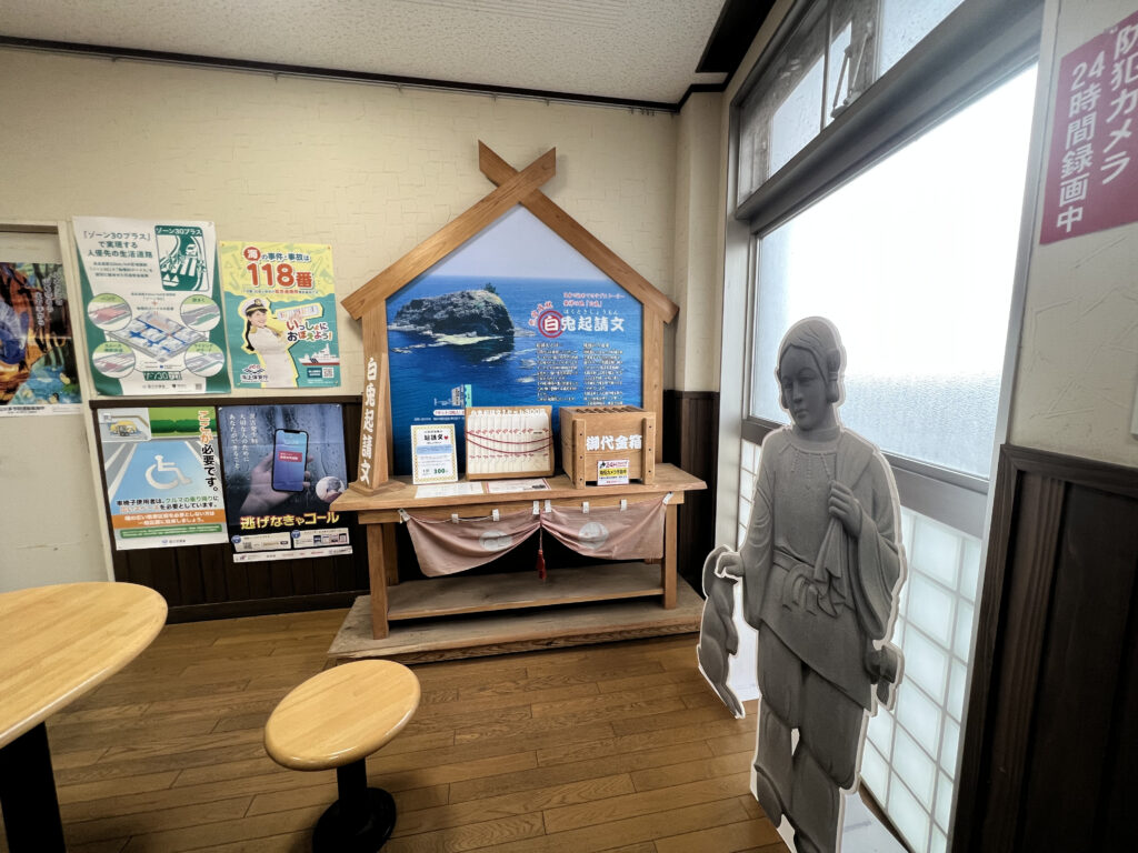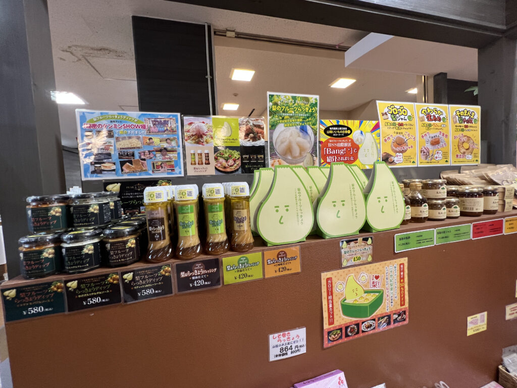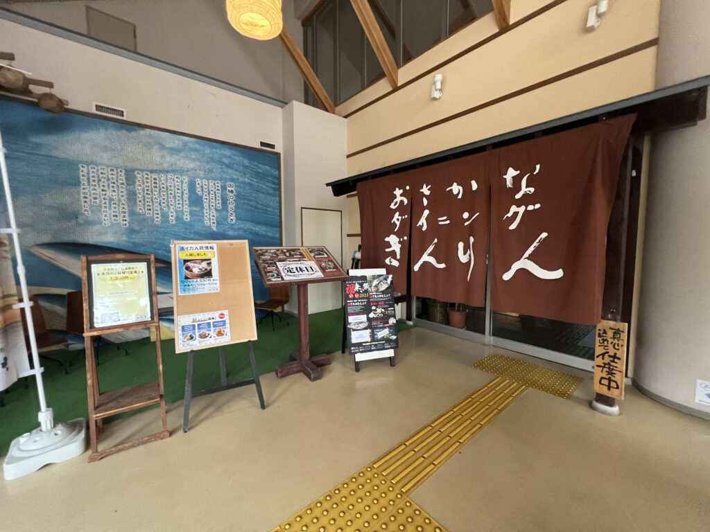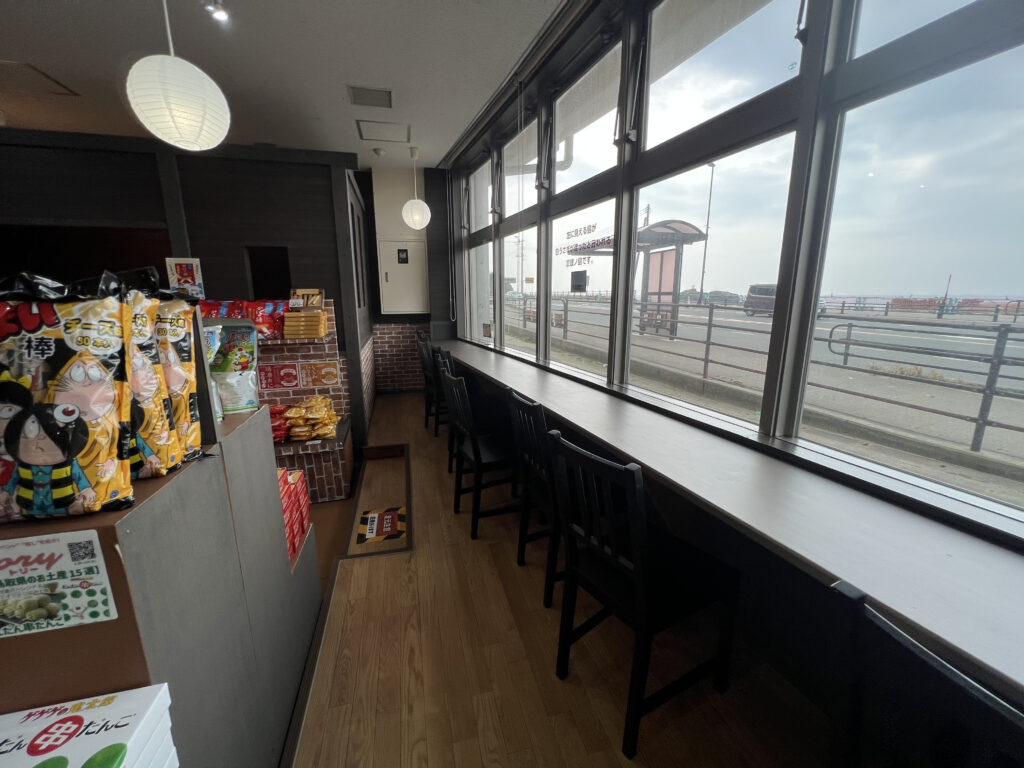 館内には物産館やコンビニがあり、地元のお土産や日常の買い物にも便利です。