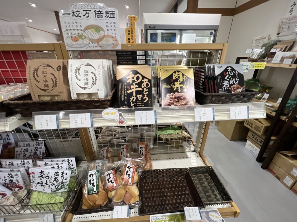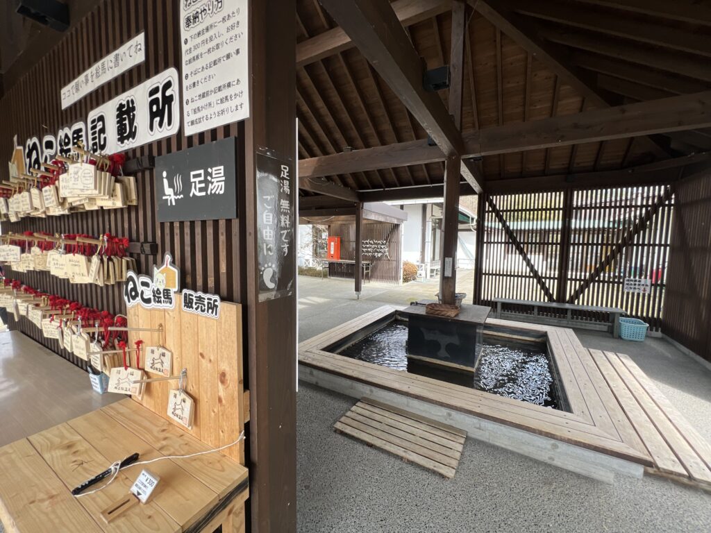 売店はやや小さめですが、足湯や温泉施設を利用できます。